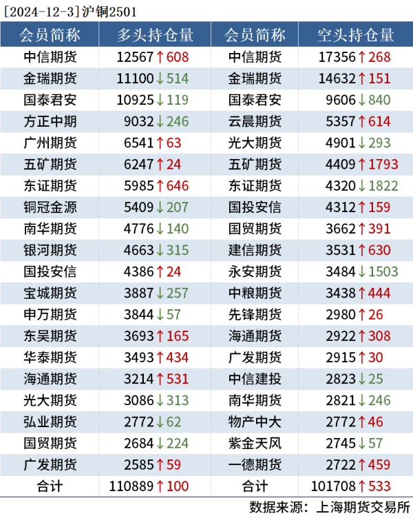 截至12月3日收盘,沪铜2501收74340元/吨,涨0.85%;沪锌2501收25290元/吨,跌0.71%;氧化铝2501收5395元/吨,涨1.98%。