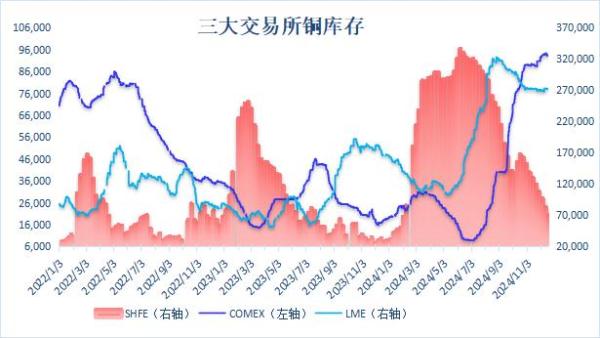 上海期货交易所最新公布数据显示,12月20日当周,沪铜库存继续下降,周度库存减少16.19%至70,864吨,降至逾十个月新低。国际铜库存减少6486吨至12,021吨。