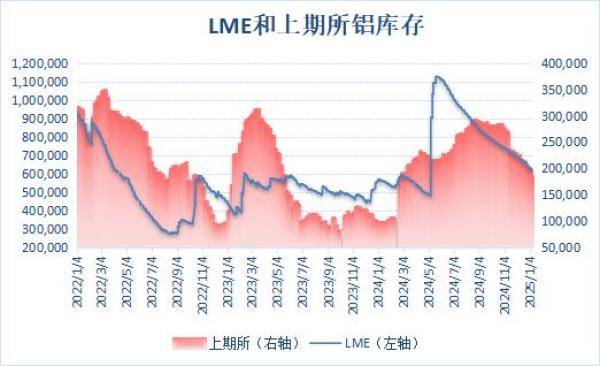 上期所公布的数据显示,1月10日当周,沪铝库存继续下滑,周度库存减少5.73%至182,168吨,降至逾十个月新低。