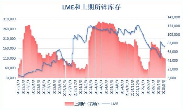 上期所公布的数据显示,5月9日当周,沪锌库存继续下降,周度库存减少2.84%至47,102吨,降至近三个月新低。