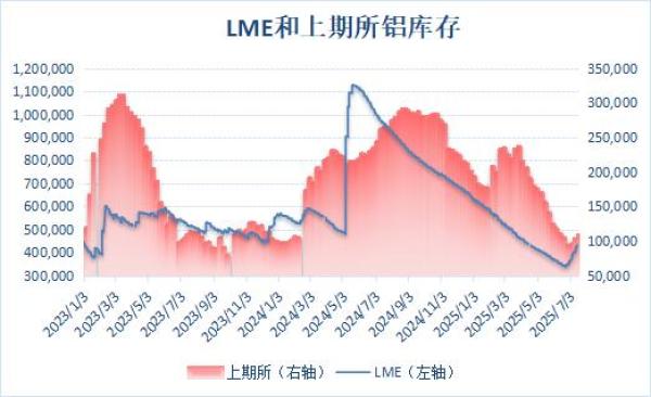 上期所公布的数据显示,7月18日当周,沪铝库存继续累积,目前已连增三周,周度库存增加5.45%至108,822吨,刷新一个月新高。