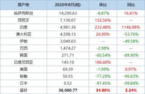 海关统计数据在线查询平台公布的数据显示,中国2025年6月精炼锌进口量为36,060.769吨,环比增加34.98%,同比增长3.24%。